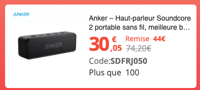 Code promo Haut-parleur Anker Soundcore 2 portable sans fil, meilleure basse, rythme de lecture à 24 heures inégalé, portée Bluetooth