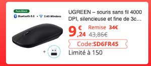 Code promo souris sans fil 4000 DPI Ugreen à 9,24€,silencieuse et fine de 3cm, pour MacBook, tablette, ordinateur portable et
