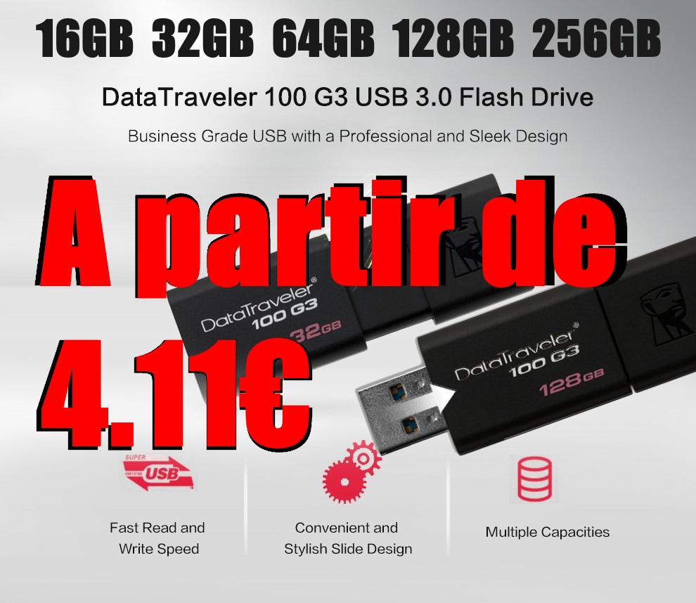 | Kingston USB Flash Drives 8GB 16GB 32GB 64GB 128GB USB 3.0 Pen | 4.11€ | -31% | http://s.click.aliexpress.com/e/Eci7k8g |