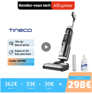 2 Codes promos pour pour ce balais aspirateur Sec et humide avec Smart sensor, Le Tineco Floor One S3 Lien
