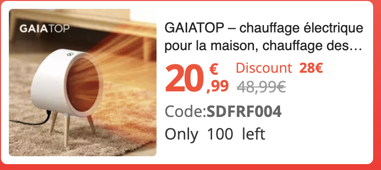 Code promo chauffage électrique Gaiatop pour la maison, chauffage des pieds, ventilateur, économie d’énergie, pour la chambre à coucher, pour