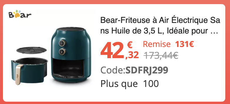Code promo Friteuse à Air Électrique Sans Huile de 3,5 L, Idéale pour Pizza, Poulet et Frites, multifonction friteuse à