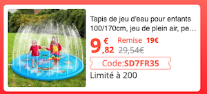 Code promo Tapis de jeu d’eau pour enfants 100/170cm, jeu de plein air, pelouse, piscine d’été, amusant, coussin d’eau 9,82€