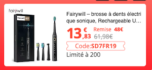 Code promo brosse à dents électrique sonique Rechargeable USB Fairywill FW-507,étanche, têtes de rechange pour adultes 13,83€ avec le code