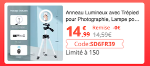 14,99€ avec le code promo Anneau Lumineux avec trépied SD6FR39 : https://s.click.aliexpress.com/e/_9RaQil