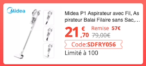 21,10€ avec le code promo Aspirateur Balais Midea SDFRY056 : https://s.click.aliexpress.com/e/_AKA1Yv