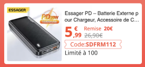 5,99€ avec le code promo Batterie externe SDFRM112 : https://s.click.aliexpress.com/e/_AtqDcr