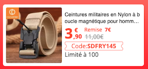 3,90€ avec le code promo Ceinture Militaire Nylon SDFRY145 : https://s.click.aliexpress.com/e/_9yzJEf