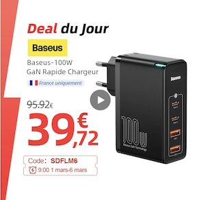 39,72€ avec le code promo Baseus SDFLM6 : https://s.click.aliexpress.com/e/_A3rioH