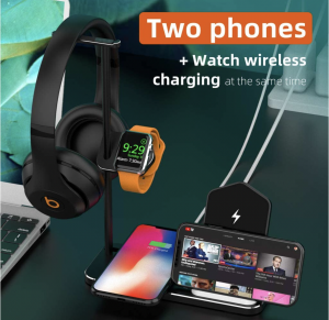 La nouvelle mise à niveau du support de chargeur sans fil charge votre iPhone/iWatch/Airpods en même temps, la conception spéciale de la ligne cachée vous offre un support de charge bien rangé. Support de casque.