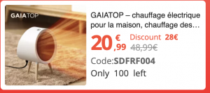 Code promo chauffage électrique Gaiatop pour la maison, chauffage des pieds, ventilateur, économie d’énergie, pour la chambre à coucher, pour le bureau