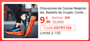 9,90€ avec le code promo Chaussures Sport SDFRY126 : https://s.click.aliexpress.com/e/_AsVHU3