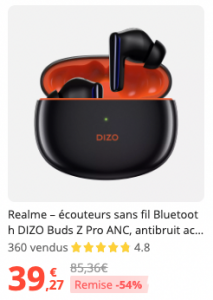 Code promo écouteurs sans fil Bluetooth Realme DIZO Buds Z Pro ANC