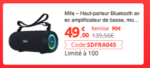 49€ avec le code promo Haut parleur Bluetooth SDFRA045 : https://s.click.aliexpress.com/e/_AgTC2p