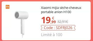 Profitez aujourd’hui de ce Code promo Mini Sèche cheveux Xiaomi Mijia Anion H100 à 19,99€