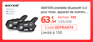 63,54€ avec le code promo Intercom Moto Bluetooth SDFRA074 : https://s.click.aliexpress.com/e/_AsVHU3