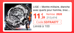 11,39€ avec le code promo Montre LIGE SDFRA077 : https://s.click.aliexpress.com/e/_9gYoQX