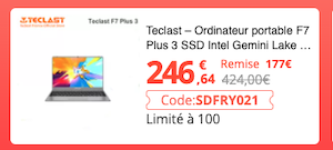 246,64€ avec le code promo ordinateur portable SDFRY021 : https://s.click.aliexpress.com/e/_ANERxx