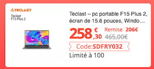 258,30€ avec le code promo PC Portable Teclast SDFRY032 : https://s.click.aliexpress.com/e/_AsVHU3