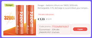 3,33€ avec le code promo pile rechargeable 7T0SNR876B67 : https://s.click.aliexpress.com/e/_A4exk9
