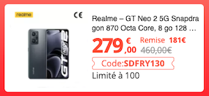 279€ avec le code promo Realme GT Neo 2 5G SDFRY130 : https://s.click.aliexpress.com/e/_A21nZh