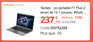 Code promo pc portable Teclast F7 Plus 2, écran de 14.1 pouces, Windows 10, 8 go de RAM, SSD de 256 go, Intel Celeron N4120, UHD Graphics 600