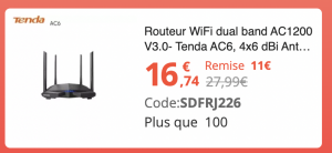 Code promo Routeur WiFi dual band AC1200 V3.0- Tenda AC6, 4×6 dBi Antennes, Ports Ethernet, Économie d’énergie, MU-MIMO,contrôl parental