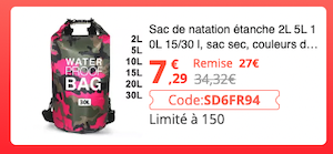 7,52€ avec le code promo sac Sec Etanche SD6FR94 : https://s.click.aliexpress.com/e/_Dk9cfwX
