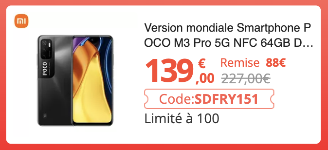 139€ avec le code promo poco M3 Pro SDFRY151 : https://s.click.aliexpress.com/e/_9h8I1L