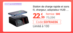 22,99€ avec le code promo station charge SDFRA036 : https://s.click.aliexpress.com/e/_9G7Az7