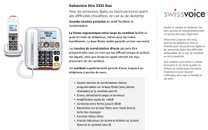 Le Swissvoice Xtra 3355 Combo dispose de quatre mémoires directes avec photo pour les contacts les plus importants, ainsi qu’un répertoire téléphonique de 100 contacts. Il permet également de bloquer les numéros indésirables ou d’autoriser uniquement les appels provenant de numéros VIP.