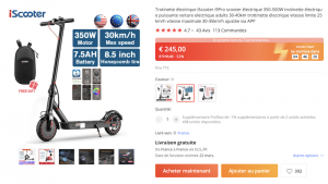 Code promo trottinette électrique pliable pour adulte Iscooter i9, 25 km/h, 30 km/h, 8.5 pouces, 350W, 7,5ah, avec application smartphone