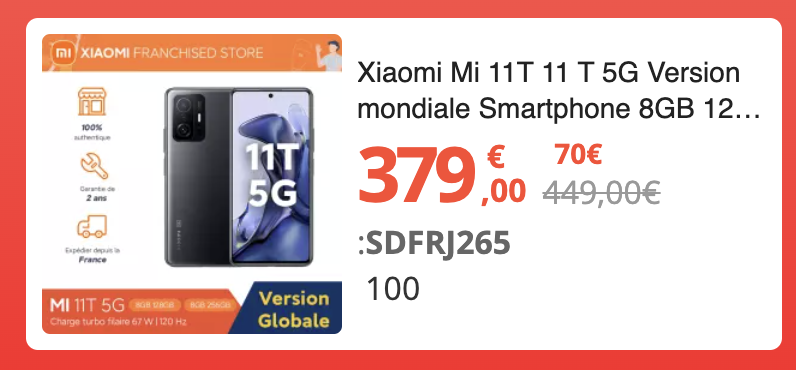 299,85€ avec le code SDFRJ264 : https://s.click.aliexpress.com/e/_AosaDh