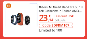23,14€ avec le code promo Xiaomi Mi Band 6 SDFRM107 : https://s.click.aliexpress.com/e/_AFPOgr