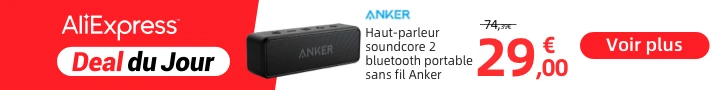-Anker Haut-parleur Soundcore 2 portable sans fil à 38,60€ avec le code SDFRD138: https://s.click.aliexpress.com/e/_9v0MDe