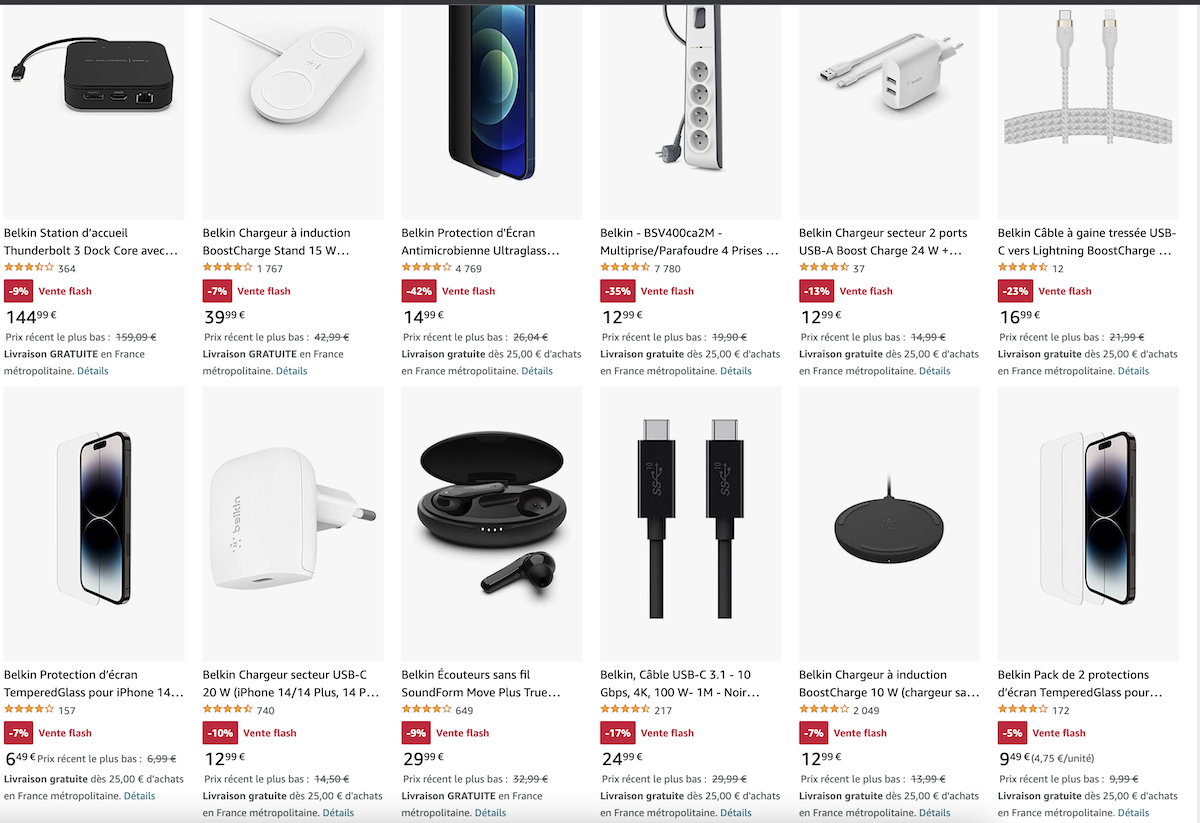 Profitez des ventes flash Belkin pour économiser sur une sélection d’accessoires pour vos appareils électroniques. En ce moment, obtenez une réduction allant jusqu’à 42 % sur des produits tels que le Belkin Station d’accueil Thunderbolt 3 Dock Core, le Belkin Chargeur à induction BoostCharge Stand 15 W, le Belkin Protection d’Écran Antimicrobienne Ultraglass Privacy, et bien d’autres.