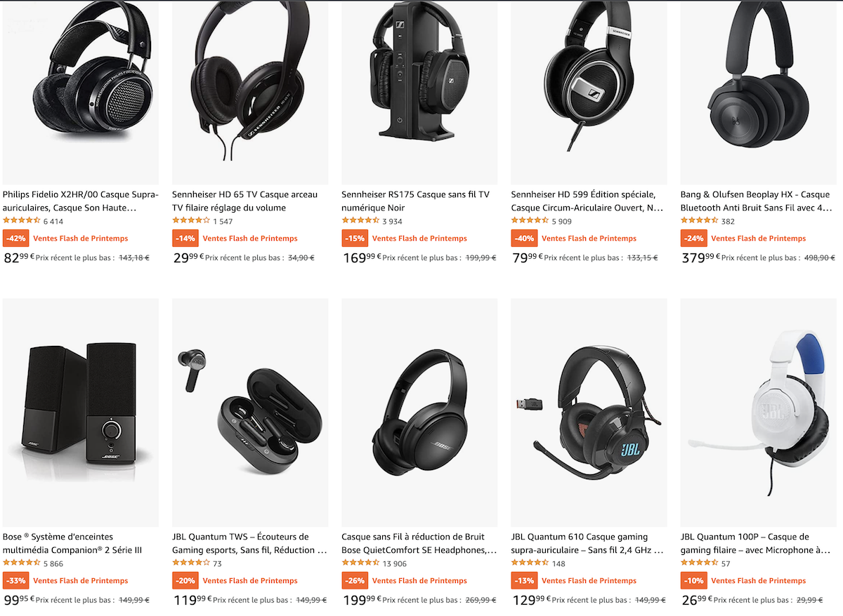 Si vous cherchez des produits audio de qualité à un prix avantageux, ne manquez pas les Ventes Flash de Printemps Amazon. Vous pouvez trouver une sélection de casques et d’enceintes de marques renommées comme Bose, JBL, Philips et plus à des prix incroyables. Voici quelques-unes des offres les plus intéressantes: