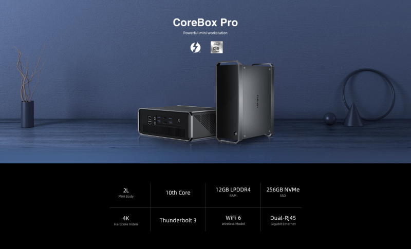 Code promo du jour avec le CHUWI CoreBox Pro Mini PC Intel Core i3-1005G1 12GB LPDDR4 256G NVMe SSD Thunderport3