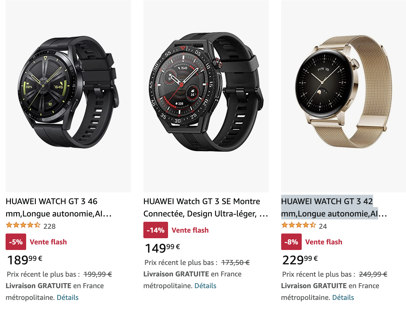 La montre connectée Huawei Watch GT 3 est actuellement en vente flash sous 3 déclinaisons Vente flash de la HUAWEI