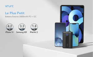 Profitez d’une expérience de charge rapide sans précédent avec la VRURC Mini Power Bank. Grâce aux technologies QC 22.5W et PD 20W, elle recharge vos appareils jusqu’à 4 fois plus rapidement que la charge standard. Ses 3 entrées et 4 sorties vous permettent de charger plusieurs appareils en même temps.