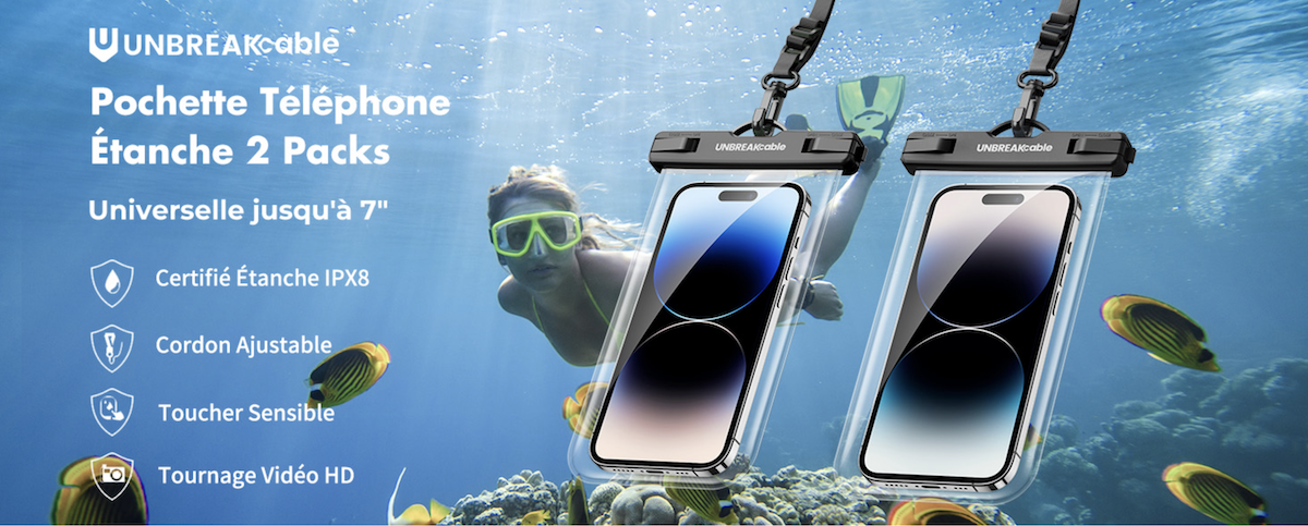 Ne laissez pas l’eau gâcher votre plaisir. Avec la Pochette Étanche Smartphone UNBREAKcable, disponible à seulement 13,53€ pour un lot
