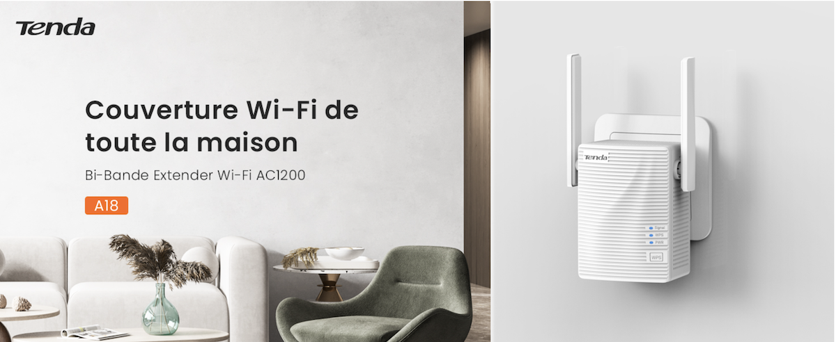 Améliorez votre expérience en ligne avec le Répéteur WiFi Tenda A18. Ce répéteur WiFi double bande offre une vitesse de