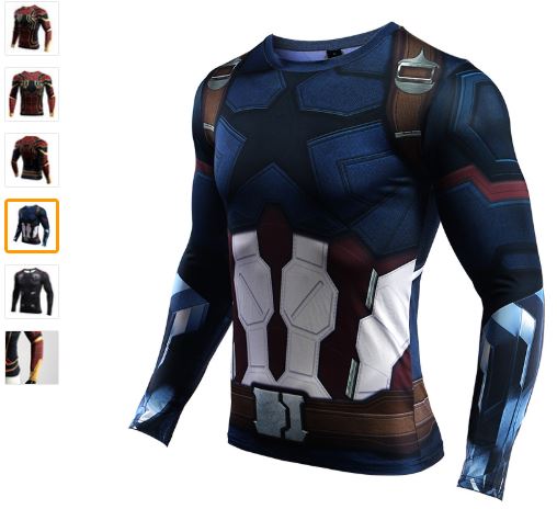 Code promo T-shirts manches longues Avenger infinity war aux couleurs de Spiderman, Iron Man ou Captain America à prix choc,