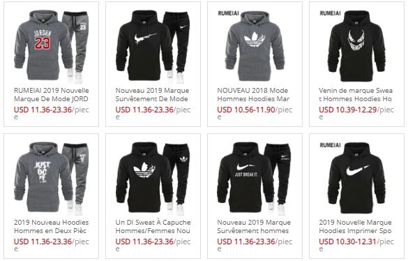 S’il n’y a plus de contrefaçon sur Aliexpress, certaine marque sont plutôt borderlines. Tracksuit T-shirt et sweet shirt Cette marque