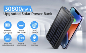 Avec 3 sorties et 3 entrées, cette batterie externe peut charger jusqu’à 3 appareils à la fois, offrant une flexibilité sans précédent. De plus, elle offre plusieurs options de charge, incluant Micro USB, USB-C et panneaux solaires.