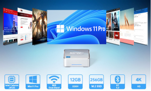 Le Mini PC Windows 11 Pro est équipé d’une mémoire RAM de 12 Go DDR4 et d’un SSD M.2 intégré de 256 Go, ce qui assure une vitesse rapide et une réactivité optimale pour toutes les applications. Il peut également être étendu avec un disque dur ou SSD de 2,5″ supplémentaire pour une capacité de stockage accrue (non inclus).