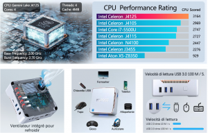 Le Mini PC est doté d’un processeur Intel Celeron J4125 à 4 cœurs, offrant des performances jusqu’à 27% plus rapides que la génération précédente, tout en consommant moins d’énergie. Il prend également en charge jusqu’à 3 écrans grâce à ses deux ports HDMI et un port VGA, ce qui est idéal pour les tâches multitâches ou pour une utilisation professionnelle.