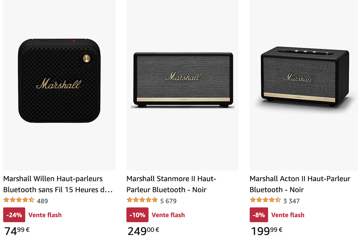 Marshall, la célèbre marque de haut-parleurs, offre des réductions allant jusqu’à -24% sur une sélection de ses produits. Profitez de cette occasion pour vous offrir des enceintes Marshall de qualité supérieure à des prix attractifs !