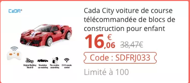 Code promo et reduction pour cette voiture de course avec télécommandée Cada City pour enfant, engin de sport à monter, blocs de construction compatibles MOC, briques techniques.