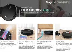 Le robot aspirateur Venga! VG RVC 3000 BK est un appareil 3-en-1 qui offre une solution complète pour nettoyer votre maison en un seul passage. Il peut être utilisé comme un balai grâce à ses 2 brosses latérales et sa brosse centrale, ou comme un aspirateur avec une puissance d’aspiration maximale de 1600 Pa. De plus, il peut également nettoyer vos sols avec son réservoir de 300 ml. Avec une batterie puissante de 2600 mAh, il peut fonctionner jusqu’à 120 minutes, et 60 minutes en mode d’aspiration maximum.